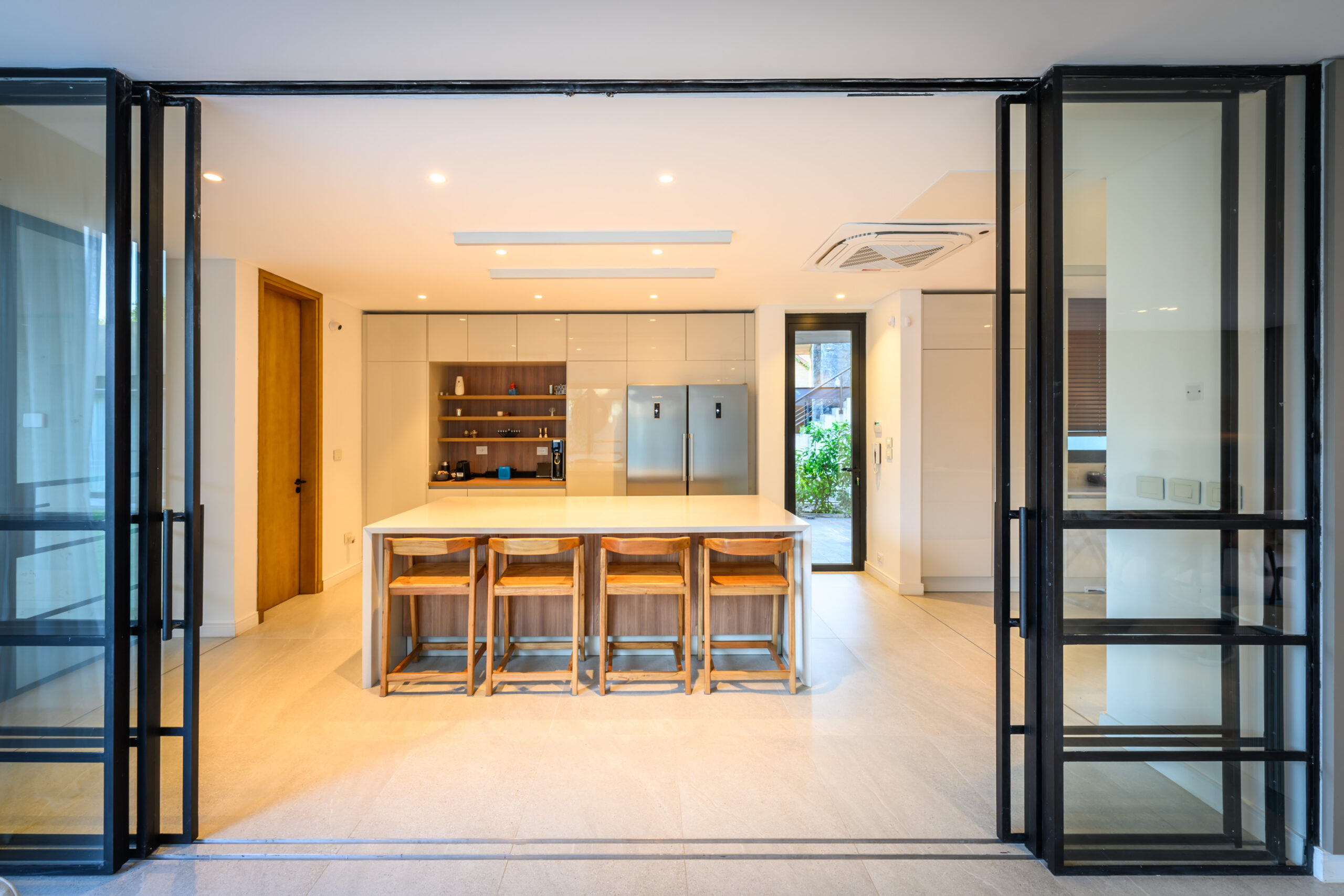 Cuando nuestros clientes nos contactaron, acababan de comprar una casa de más de 30 años, ubicada en un terreno espectacular pero con una arquitectura completamente desactualizada. A partir de sus referencias —contemporáneas, puras y minimalistas— nos propusimos un objetivo ambicioso: transformar por completo la espacialidad, la estética y la funcionalidad de esa vieja estructura.